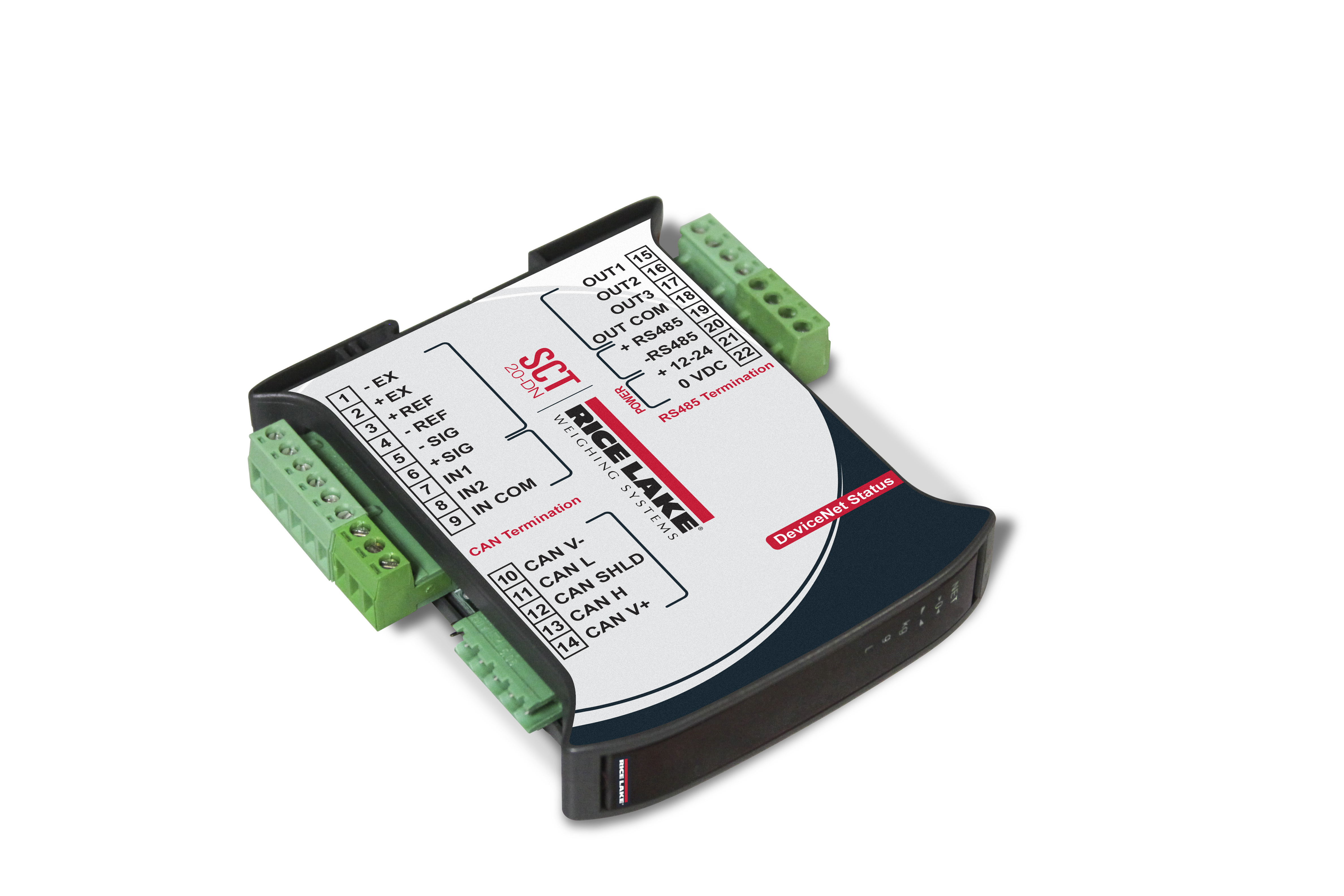 O Indicador e Condicionador de Sinal SCT-20 da Rice Lake é montável em trilho DIN ou painel de controle, onde serve para converter sinais de células de carga de uma Balança de saída analógica, saída serial, ou um protocolo de rede específico. Ao contrário de muitos outros transmissores de sinal, o SCT-20 Rice Lake tem o seu próprio display de 0,3 polegadas, com anunciadores para a unidade e o status da pesagem, botões para zero, tara e o valor nominal, simplificando a configuração de balança e calibração .